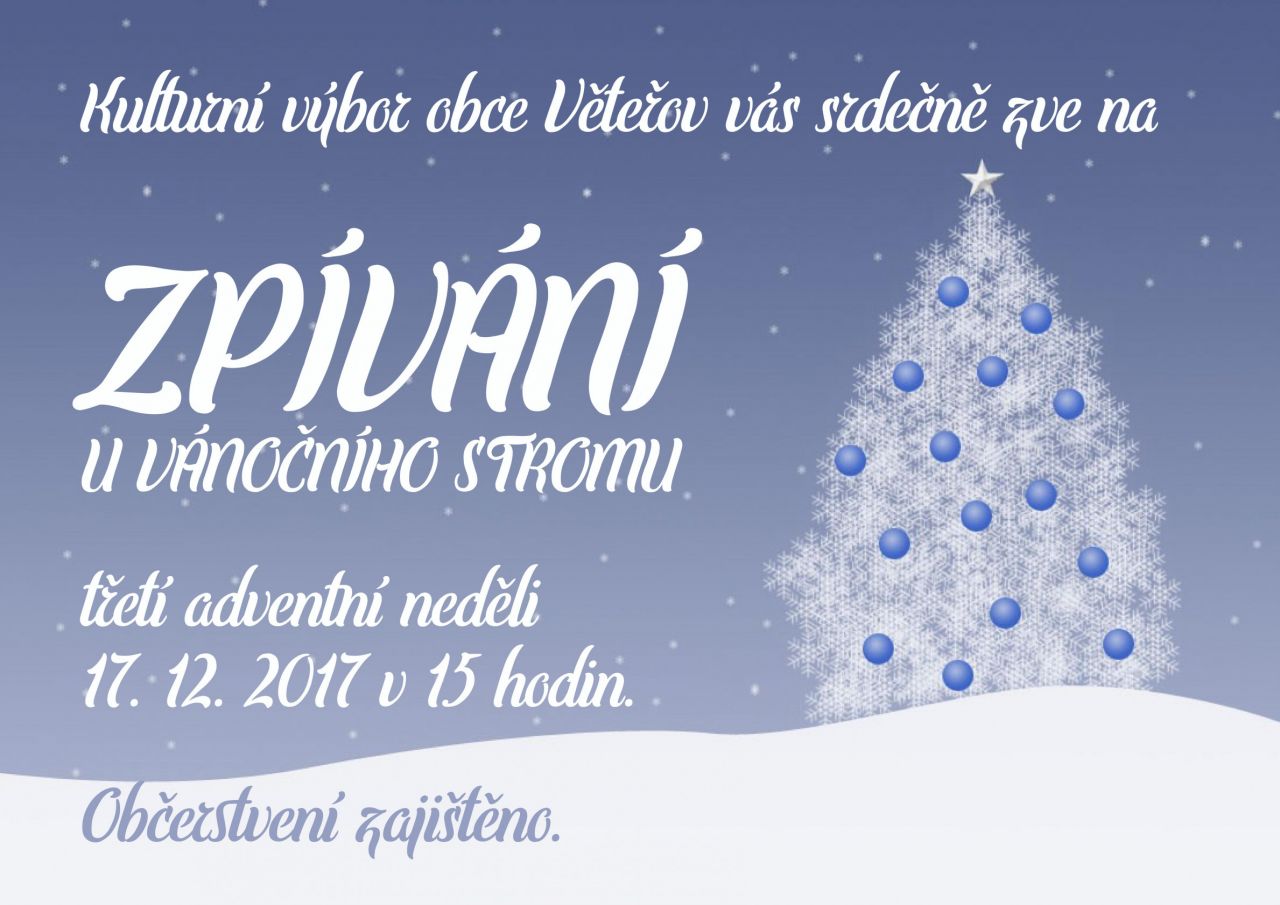 Kulturní výbor obce Věteřov Vás srdečně zve na ZPÍVÁNÍ U VÁNOČNÍHO STROMU.