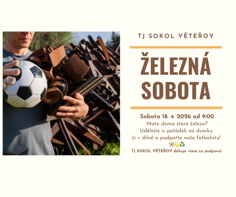 V sobotu 18. dubna 2026 od 9:00 hodin proběhne po celém Věteřově tradiční sběr železa.