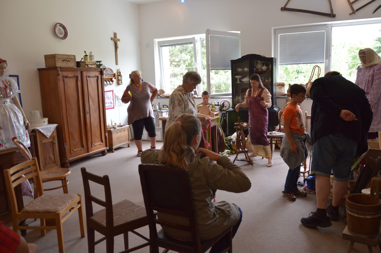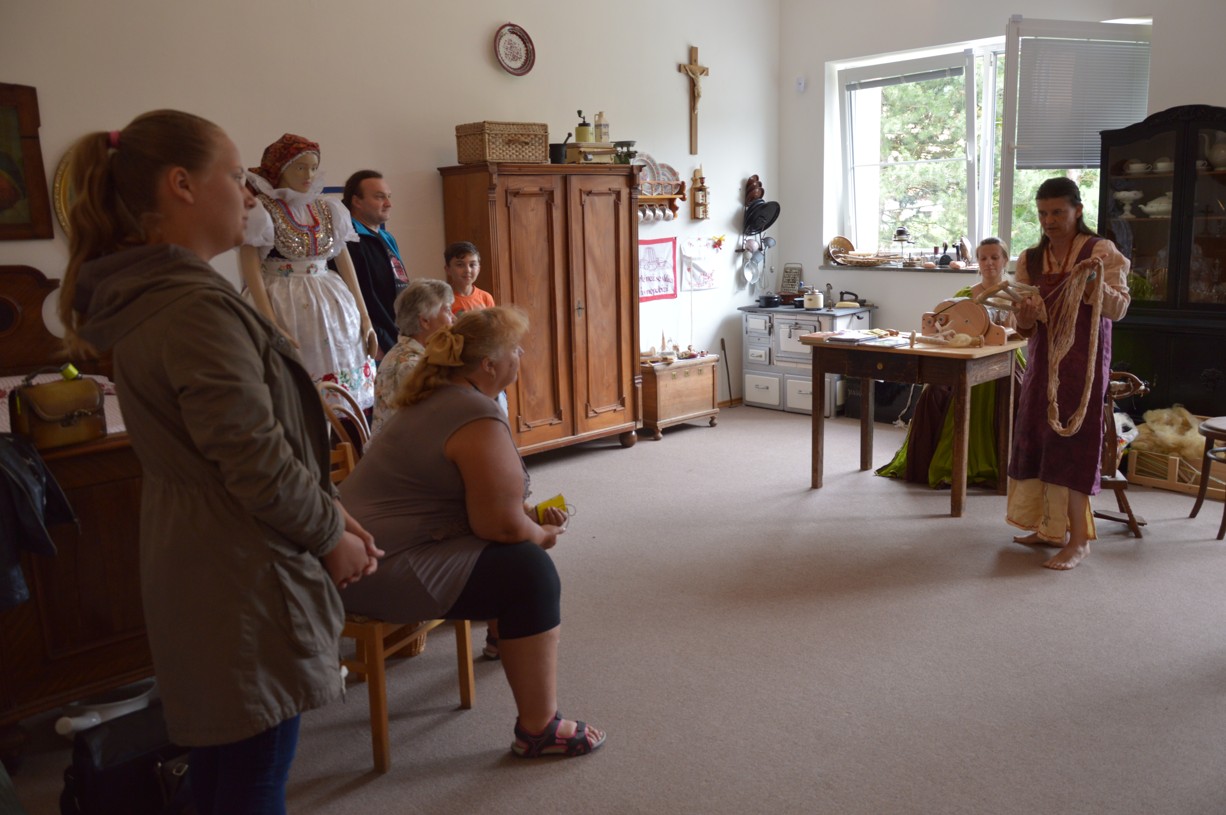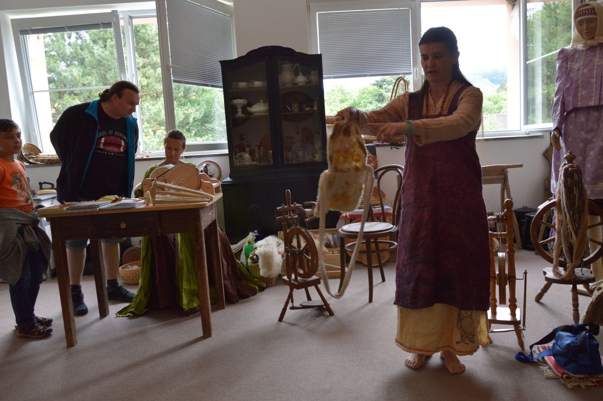 Ukázka práce s kolovrátkem a vlnou v muzeu